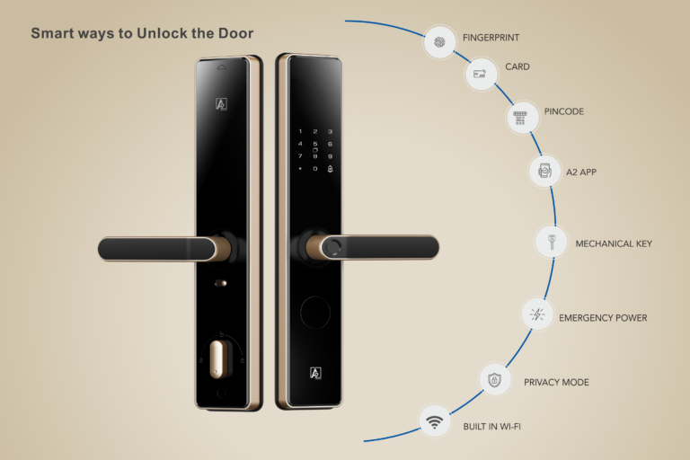 The A2 Alpha 50 smart lock is a modern electronic door lock engineered to combine high security with everyday convenience for homes or offices. It integrates several smart and traditional access methods to give flexible control over entry. It offers multiple keyless access options including Fingerprint, PIN, RFID card, NFC Card, Mechanical key, and mobile app control.